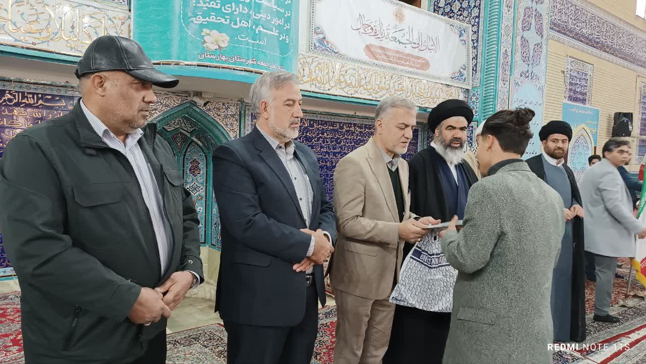 به گزارش روابط عمومی فرمانداری بهارستان؛ همزمان با ولادت حضرت علی اکبر (ع) و هفته جوان از نخبگان جوان  شهرستان بهارستان در عرصه‌های علمی، ورزشی، فرهنگی، هنری و ایثار توسط عبدالحمید شرفی فرماندار، حجت الاسلام والمسلمین موسوی امام جمعه و شماری از روسای ادارات در بین الصلاتین نماز جمعه تجلیل به عمل آمد.