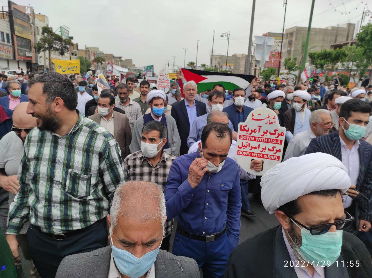 وی درادامه به اینکه بیش از 70سال از توطئه شوم استکبار جهانی واستعمار پیرانگلیس خبیث وپلید درایجاد رژیم جعلی ومجعول صهیونیستی در سرزمین مقدس قدس فلسطین می گذارد واین سرزمین پیامبران الهی ازجمله حضرت ابراهیم، یعقوب، داود ،سلیمان و... می باشد وهمچنین به وعده الهی در آیات 4تا7سوره اسرا و تورات که به هلاک ونابودی رژیم جعلی وپیروزی مسجدالاقصی داده شده اشاره نمودند.